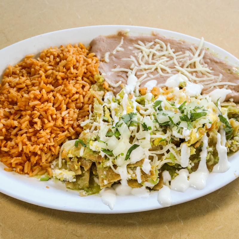 Tortilla chips and eggs sautéed with our red or green salsa, garnished with sour cream and cheese